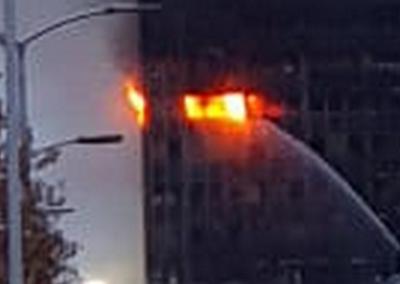 Sinoć navečer zapalio se požar na izgleda petnaestom, pretposljednjem katu. Ubrzano se proširio vertikalno prema dolje. Zbog nedostupnosti unutrašnjosti požar se gasi samo s nižih, jedinih dostupnih, vanjskih pozicija.