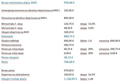 Kao što vidimo na izračunu minimalne plaće za 2025. propisani bruto iznosi 970,00 eura, te nakon odbijanja mirovinskih doprinosa dohodak radnika dolazi na 800,75 eura. Osobni odbitak, dakle neoporezivi dio dohotka propisan je tek na 600,00 eura, puno manje od tih 800,75 eura. Zašto bi radnik čiji je standard ugrožen uopće trebao plaćati porez i pomagati državu kad i sam premijer tvrdi da je standard čovjeka na minialcu ugožen?