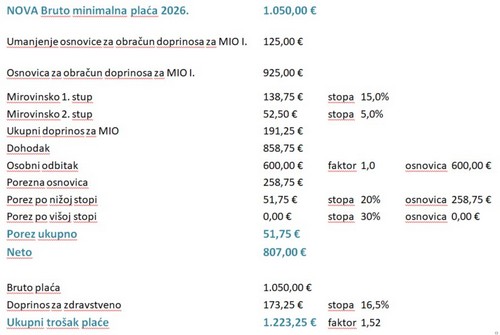 Uočimo da je minimalna netto plaća za 2026. godinu povećana tek za 6,10%, a da su pri tome poslodavcima rasli ukupni troškovi za plaće 8,24%.
