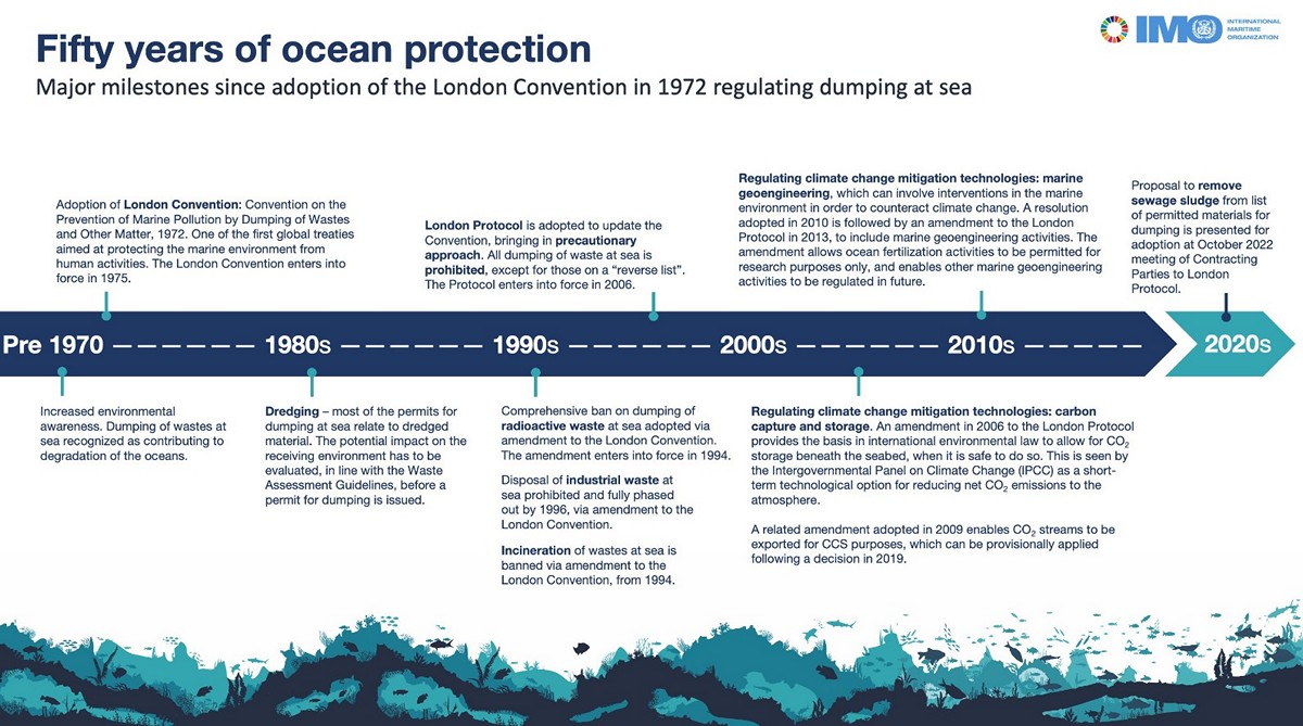 Godine 1972. donijeta je Konvencija o sprječavanju onečišćenja mora potapanjem otpada i drugih tvari, poznata kao Londonska konvencija. Stupila je na snagu 1975. godine.