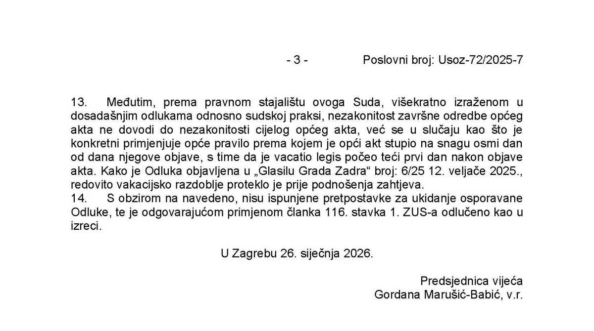 Visoki upravni sud ali i građanke i građani grada Zadra, sad i u budućnosti, dati će im za pravo.